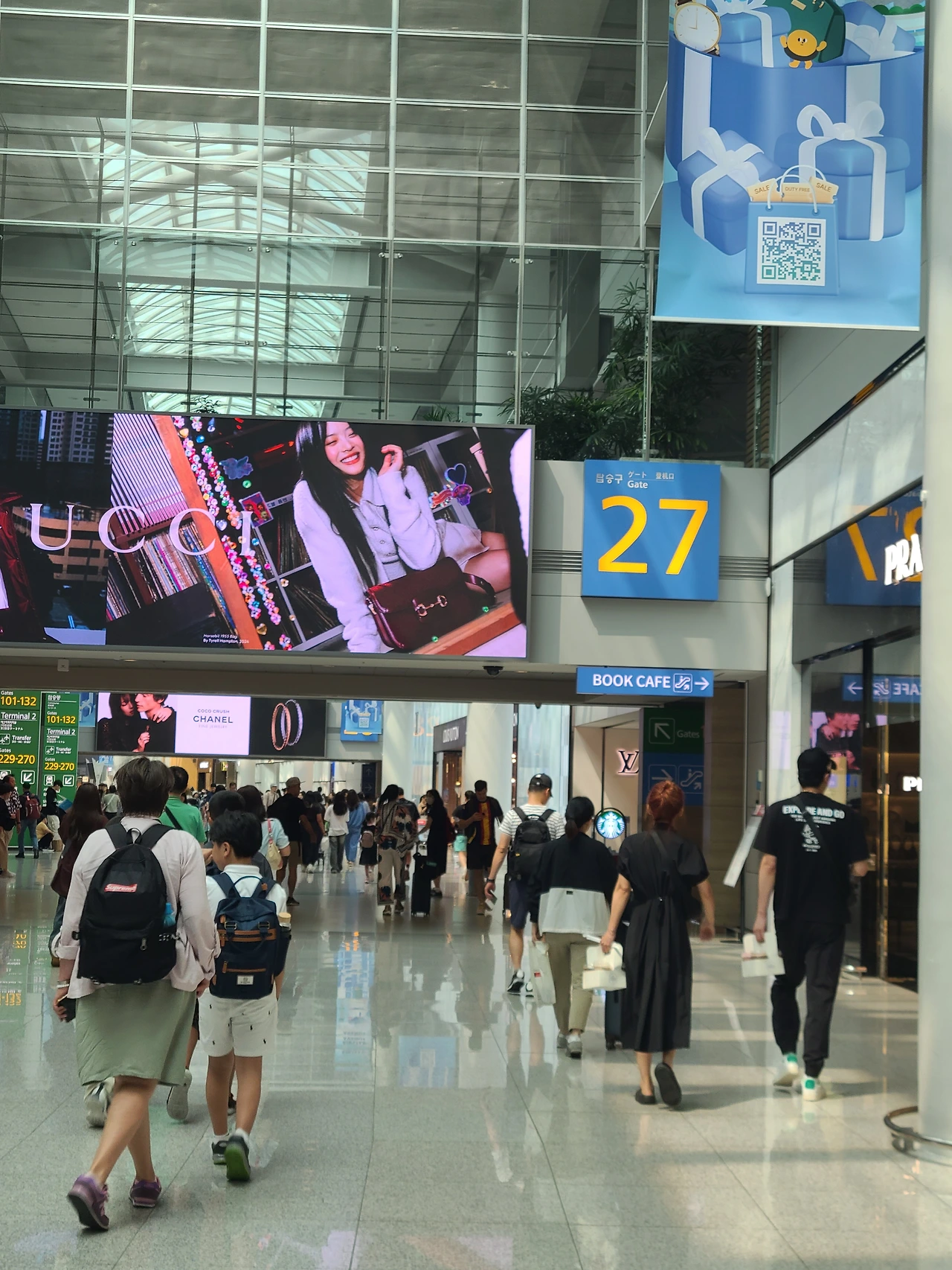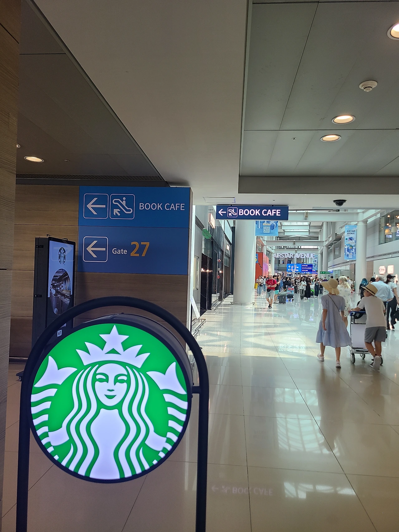 에어스타 에비뉴 27번 탑승구 입구에 위치한 스타벅스 북카페. 들리면 꼭 가보기를 커피맛도 3층보다 훨씬 더 낫다.