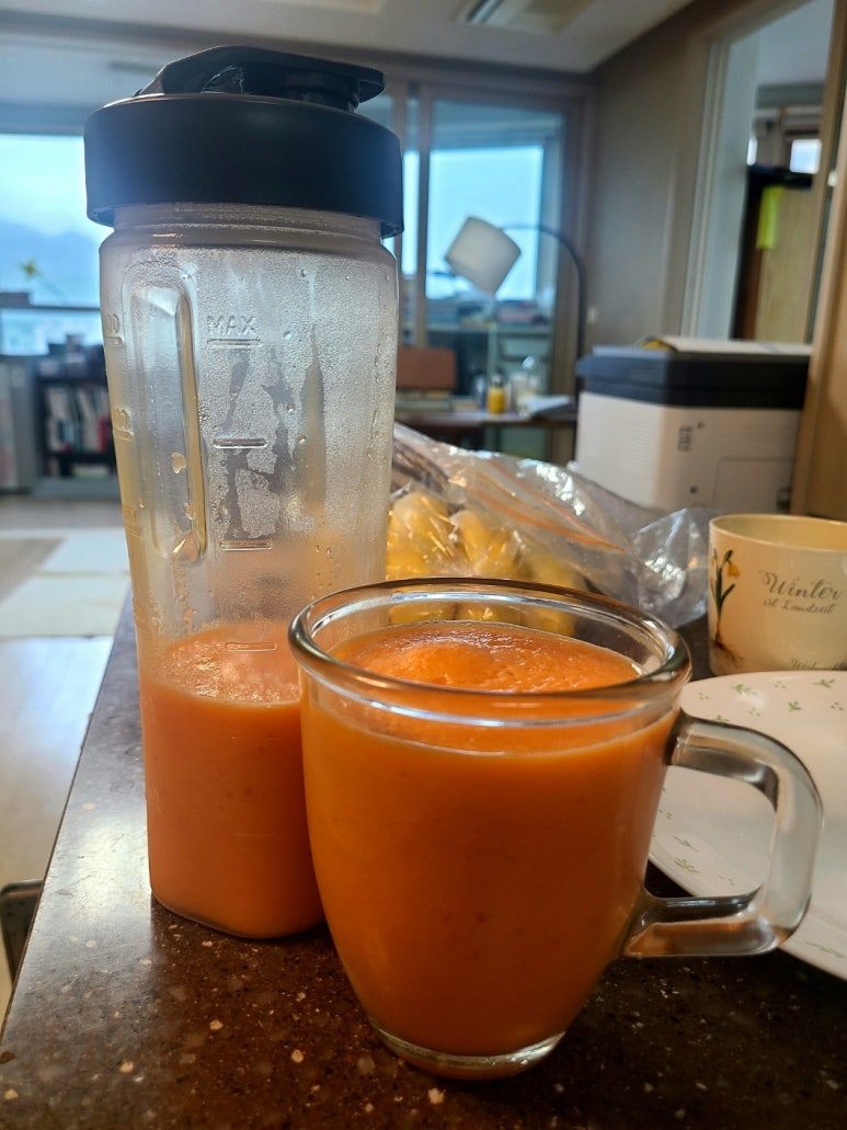 당근 한 개, 사과 반 개, 마 한 개. 물 100밀리.