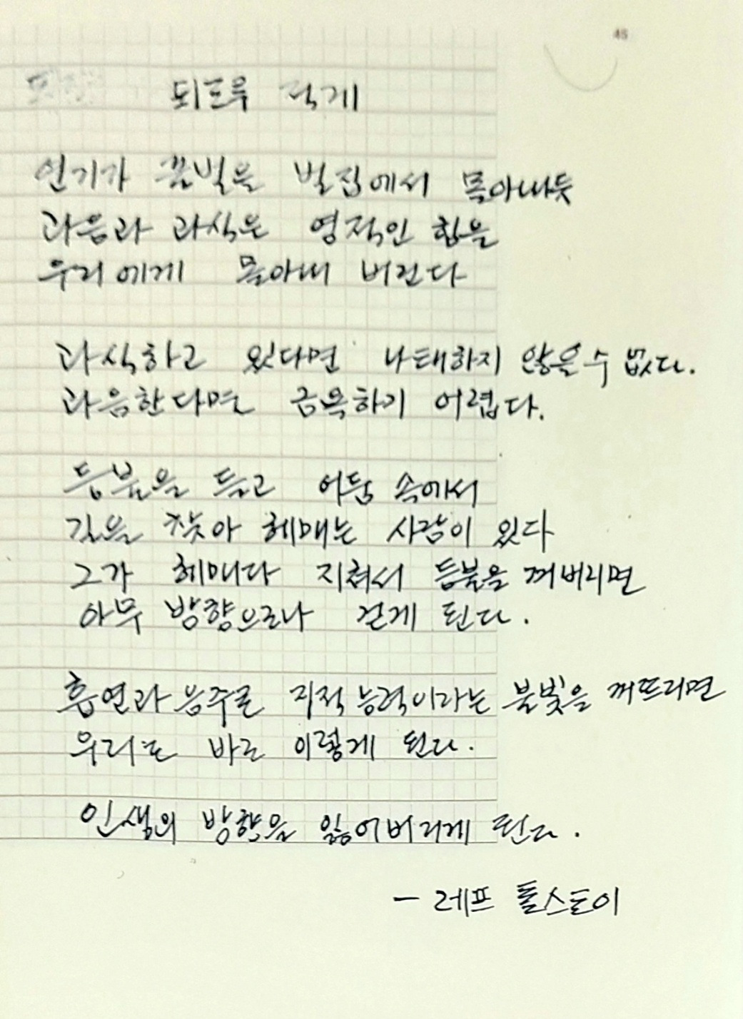 <<살아갈 날들을 위한 공부, 레프 톨스토이>> 중에서...