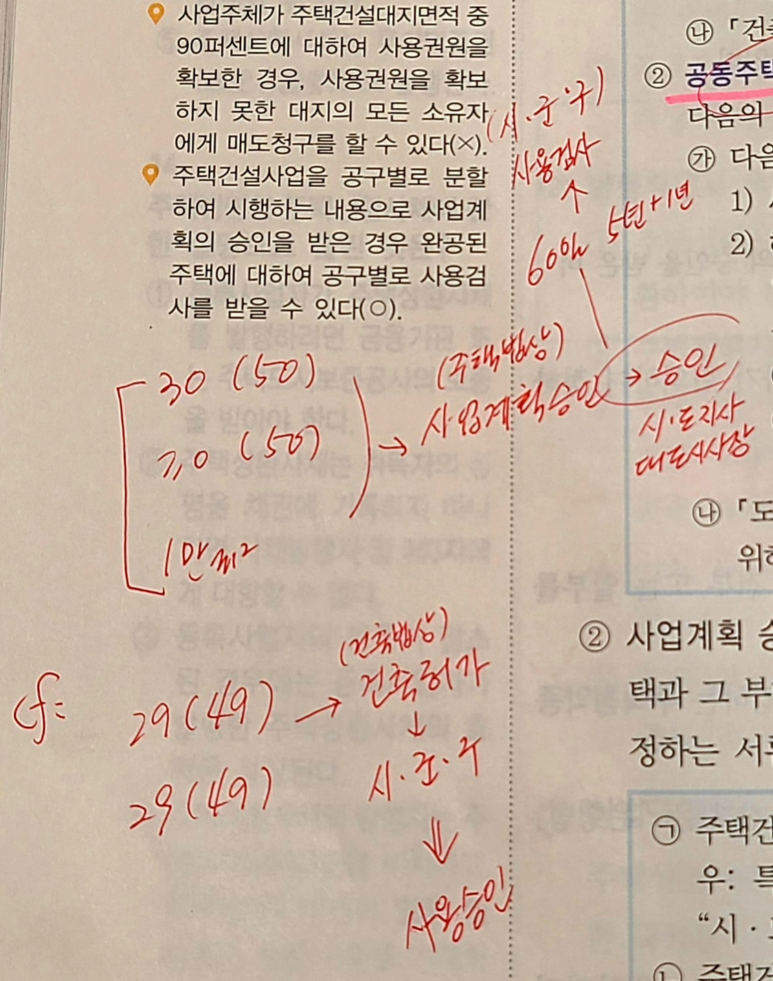 기본과정이라고 주택법에만 총 7강을 할애해서 설명해줬다. 빈출되는 부분만 골라서 강의해 줬는데도 내용이 꽤 많았다. 이제 부동산 공법은 가장 어려운 부분인 <도시개발법>과 <정비법>이 남았다. 기출부분도 가장 적고 분량도 작은 <농지법>은 별책부록 느낌이 들 정도다.