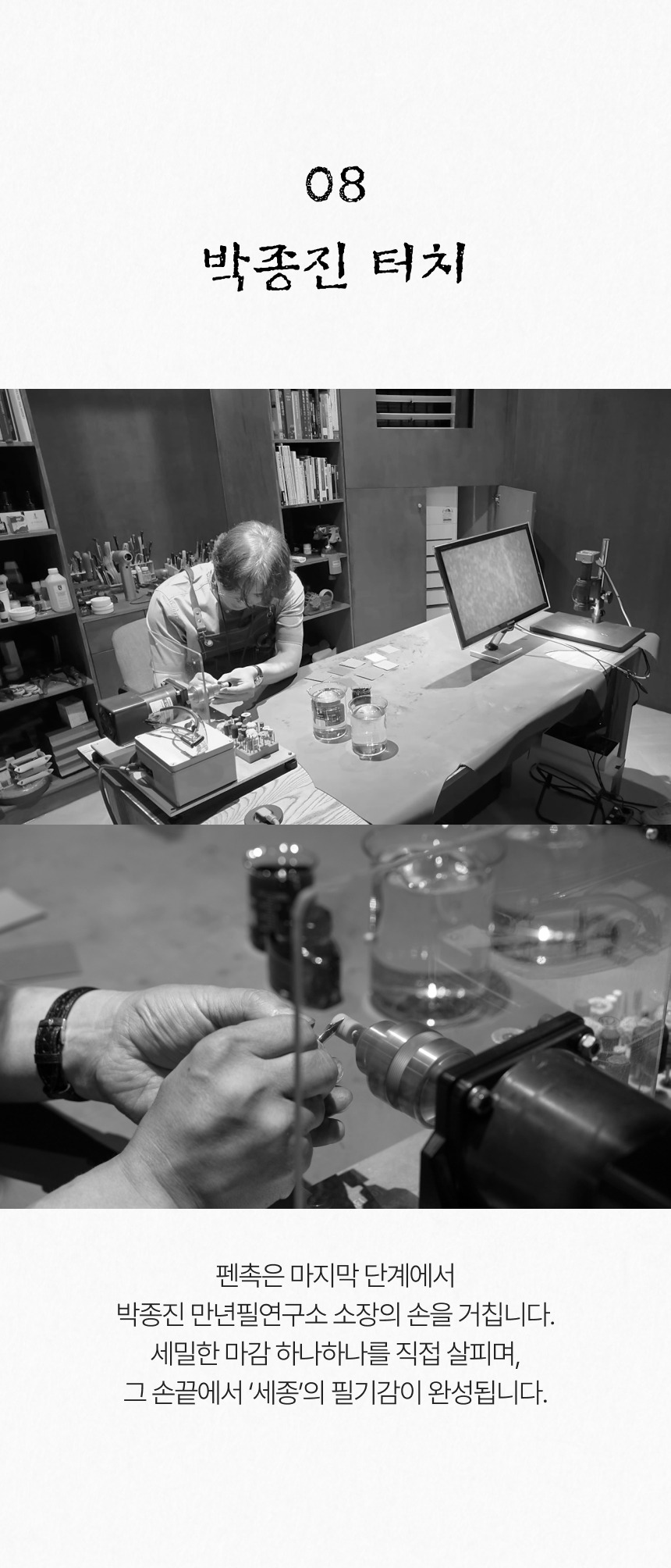 한정판 국산 만년필 베개의 탄생스토리는 팟빵 구독서비스 '월간 김어준'을 통해 진행되었었는데, 하나의 제품이 탄생되기까지의 여정을 살펴보는 것도 꽤 흥미로운데, 마침 유튜브에 전 과정을 담은 영상이 있어 소개한다. 이 영상에서 주목할 점은 '세계적인 만년필 전문가 박종진'의 입담이다. 그는 베개의 탄생 이전에도 '월간 김어준'의 한 섹션을 도맡아 전 세계에서 주목할 만한 만년필들을 소개했는데 식견과 기술력은 가히 '세계 최고'라 할 수 있다. 이렇게 장담하는 건, 지금 그가 직접 터치(출시되는 만년필 하나 하나를 직접 루뻬를 끼고 글씨가 잘 써지도록 손을 봤다는 뜻)한 만년필 베개를 사용하면서 황홀한 필기감을 경험하고 있기 때문이다.