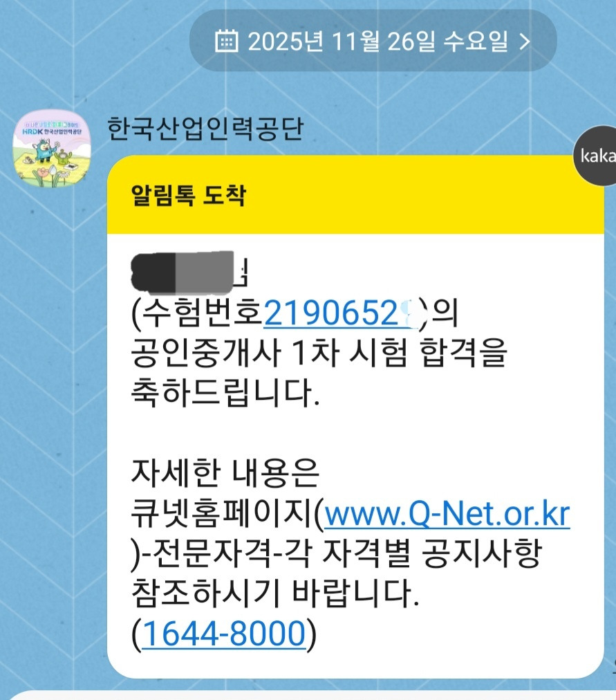 어제 오전 9시 정각, 한국산업인력공단으로부터 카톡 메시지가 왔다. 합격 소식이었다.