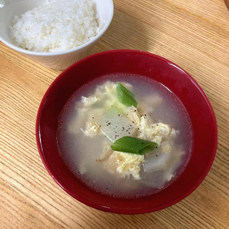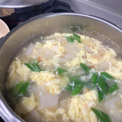 (국이 이미 30분가량 끓었으므로 달걀을 넣은 이후에는 약불로 10분 이하로 끓인다.)