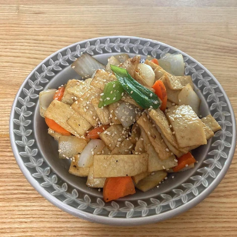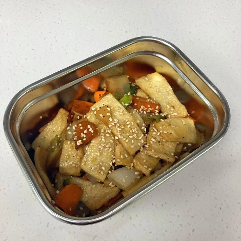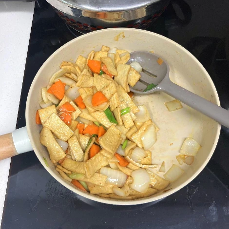 함께 볶을 채소가 있다면 채소 먼저 볶다가 어느 정도 익었을 때 어묵을 넣는다.