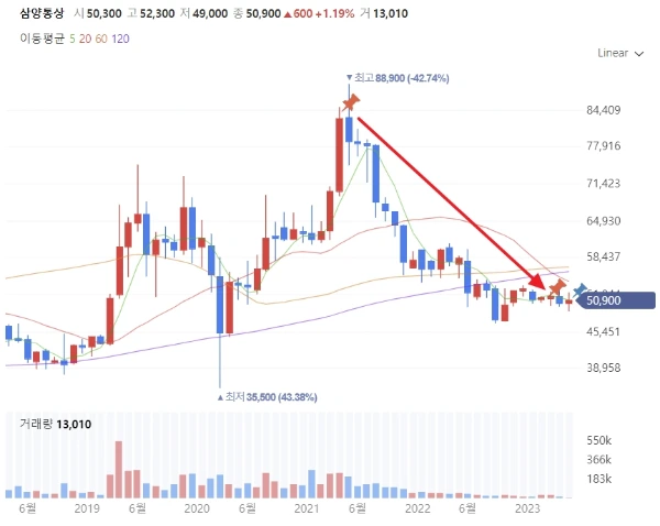 내가 삼양통상을 2년간 분할매수하다가 손절한 이유를 밝히면 다음과 같다.