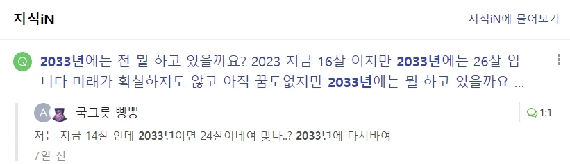 여전히 지식IN에만 의존한다면 불확실성을 연장하겠지만, 10년의 시계열 동안 지속 성장하는 루트를 선택한다면 어엿한 사회인으로 성장할 것으로 믿는다.