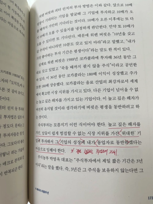 2) 높고 깊은 해자를 가진, 남들이 쉽게 범접할 수 없는 시장 지위를 가진 '위대한' 기업에 투자해서 그 기업의 성장에 내가 동업자로 동반하겠다는 마음으로 임해야 한다.