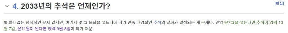 36. 추석이 언제인가라는 형식에 초점을 맞추는 것은 인생의 질에 큰 의미 없을 것임.
