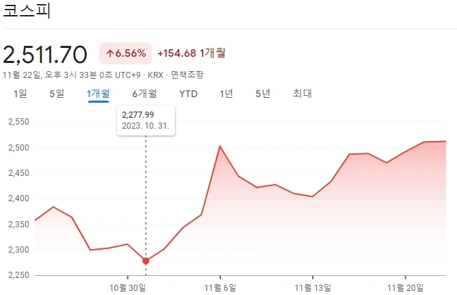 5. 한 달도 안 되었던 10월 말, 코스피는 2,200대를 마킹하기도 하였음.