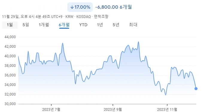 38. 기업의 시총은 오르는 듯 하더니, 11월 말 기준 하락을 면치 못하고 있음.