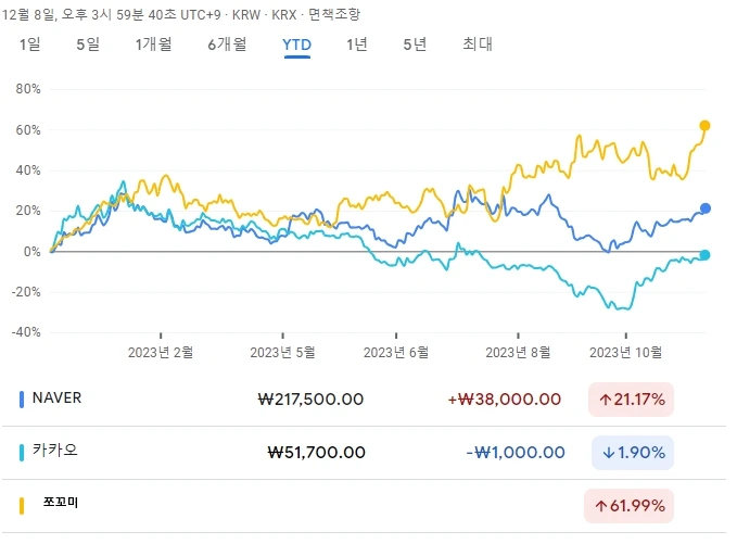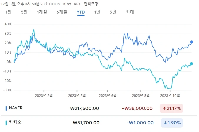 31. 네이버에 연초에 투자했으면 괜찮은 성과, 카카오라면 본전도 아직 안왔다는 거임.
