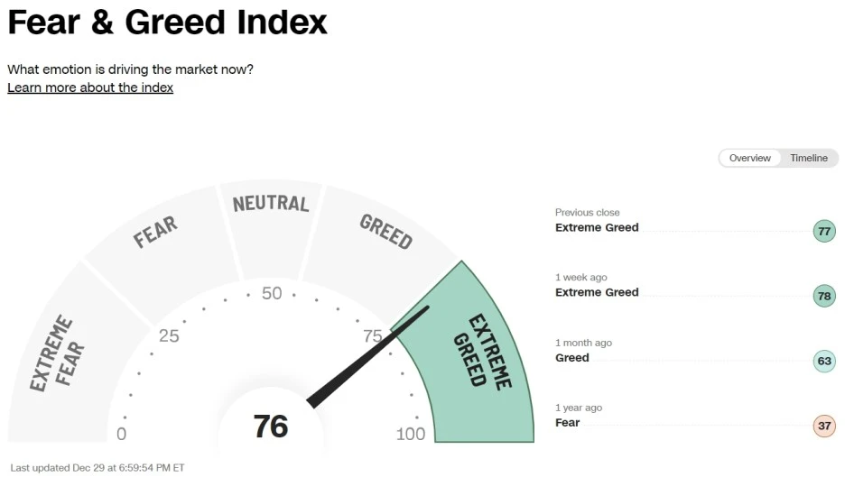 6. 2023년 말, 투자자들의 증시에 대한 심리는 매우 Greed하게 바뀌었음.