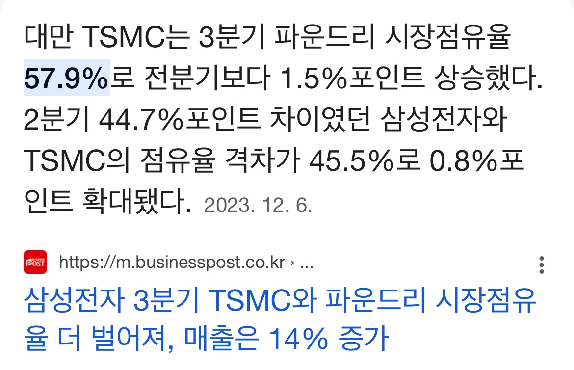 23. 안타깝게도 S전자 갤럭시폰이 애플의 사과폰에 비해 프리미엄 스마트폰 시장에서 열위이며, S전자가 파운드리 시장에서 TSMC에 비해 market share가 열위인 것임.
