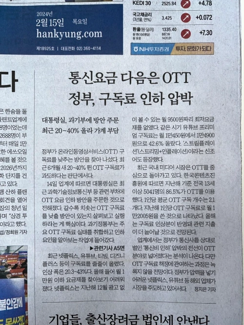 3. "통신요금 다음은 OTT / 정부, 구독료 인하 압박"