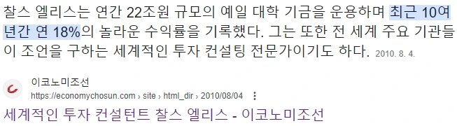 3. 찰스 엘리스는 예일 대학 기금을 운용하여 10여 년간 연 18%의 복리 수익률을 거둔 투자계의 거물 중 한 분임.