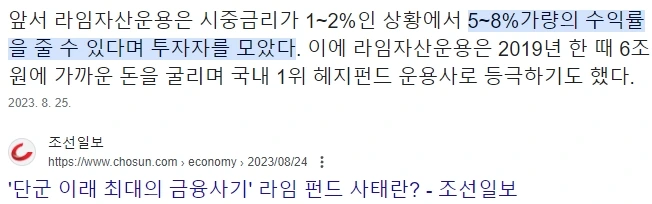 7. 저금리 시기에 5~8% 수익률을 '보장'한다고 강력히 주장하며 투자자들을 모았던 것임.