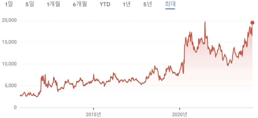 40. 그런데, 언젠가부터 all time 으로 주가 차트를 보고 있음.