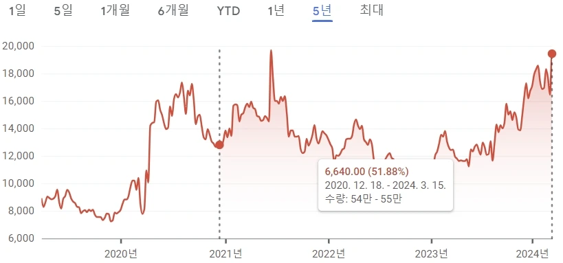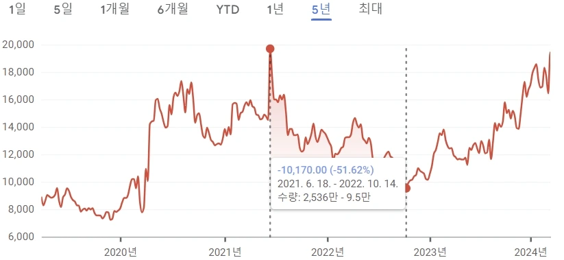 18. 투자를 시작했던 2020년 12월 부터 현재까지 주가 흐름은 상승-하락-상승 이었지만, 상관없이 꾸준히 분할 매수하였음.