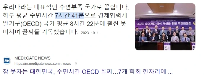 3. 그럼, 대한민국 국민의 평균 수면 시간은 몇 시간이나 될까?