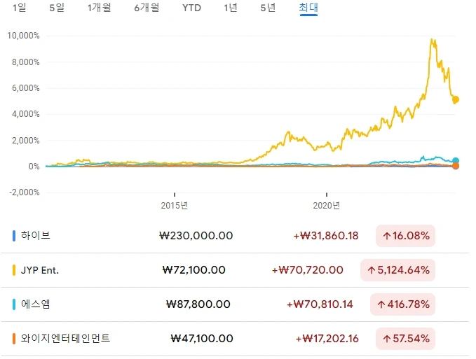 50. 1~2년 정도는 하락할지 어떨지 모르겠지만, 글로벌로도 체계적인 육성 시스템, 독립 레이블 의사결정 구조 마련한 업무 환경은 분명한 경쟁력임.