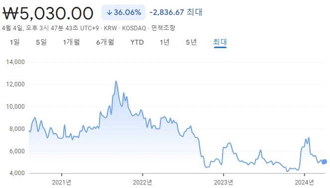 6. 해당 기업에 대한 주가만 가지고 아주 얕게 이야기해보겠음.