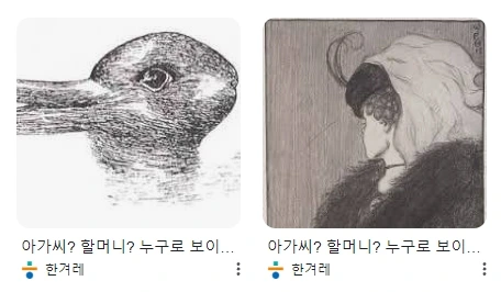 9. 왼쪽은 어디에 초점을 두느냐에 따라 오리 혹은 토끼로 보이고, 오른쪽은 초점에 따라 아가씨 혹은 할머니로 보일 것임.