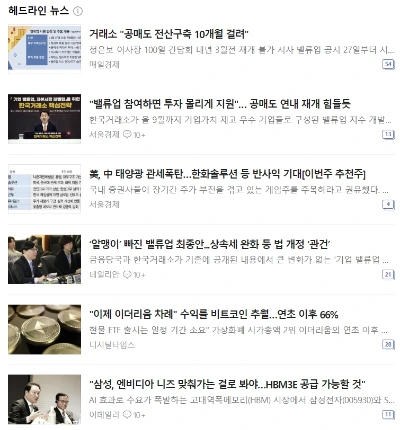 2. 경제 뉴스 헤드라인을 스윽 캡쳐해보았음.