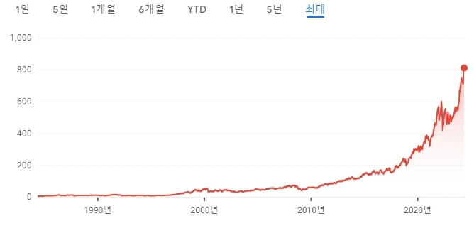 21. 1969년에 샘 월튼이 창업한 전 세계 매출 규모 1위의 할인 매장으로 미국 시장에 상장된 이래 주가는 장기 우상향하고 있음.