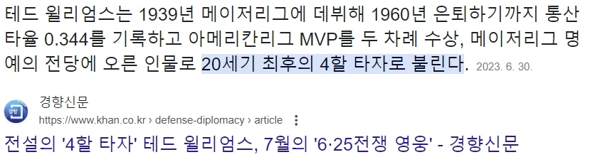 10. 미국의 전설적인 4할 타자인 테드 윌리엄스가 있음.