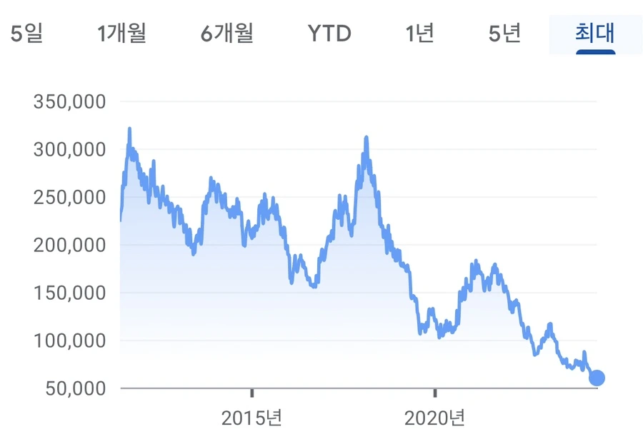 24. 저평가 찾았다!...? 주가는 고점 대비 롱타임 3/4이 날라갔음.