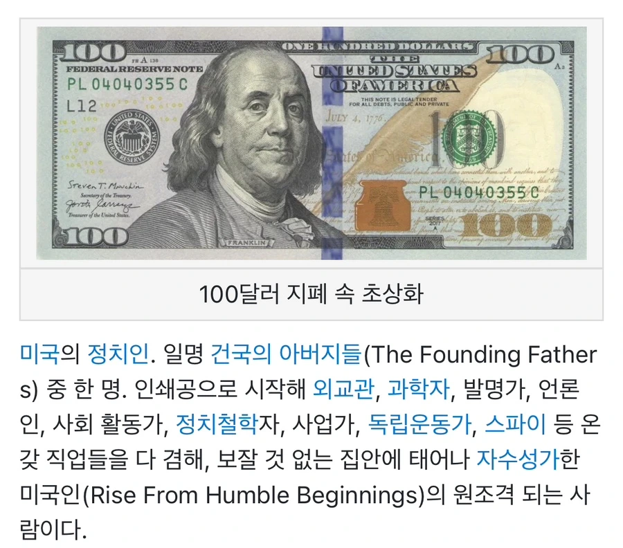 50. 멍거 할아버지가 존경했다던 벤자민 프랭클린은 인쇄공, 외교관, 과학자, 발명가, 언론인, 철학자, 사업가 등 디양한 경험과 업적을 쌓았다는 것임.