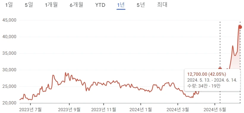 그런데, 전부 익절 후 약 1개월이 지났는데, 주가는 매도 가격보다 약 40% 추가 상승하였다.