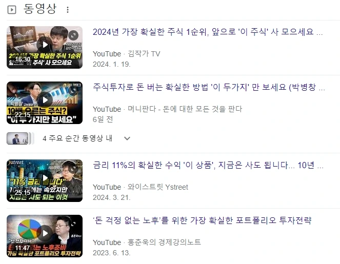 3. 그 밖에도 유튜브 썸네일에는 '확실'하다는 투자 썸네일을 몇 개 볼 수 있었음.