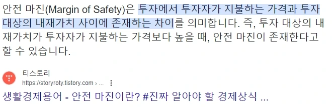 1. 주식 투자, 특히 가치 투자를 접하다보면 자연스레 듣게 되는 단어는 '안.전.마.진.' 임.