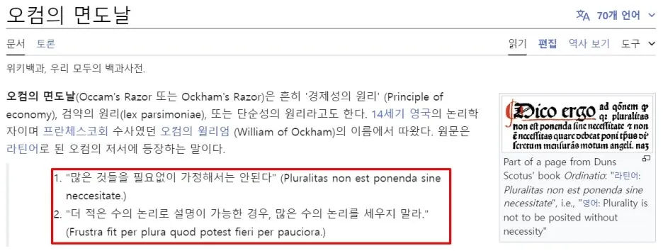 예를 들어, 오컴의 면도날이라는 논리학 개념이 있다.