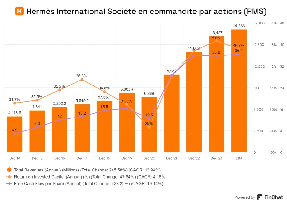51. 단기 투자자라면 높은 ROIC는 수익률과 연동되지 않기에 상관없겠지만, 에르메스 동업자인 장기 투자자라면 앞으로 10년도 잘 부탁드립니다 하는 게 단순 명확 전략이라고 봄.