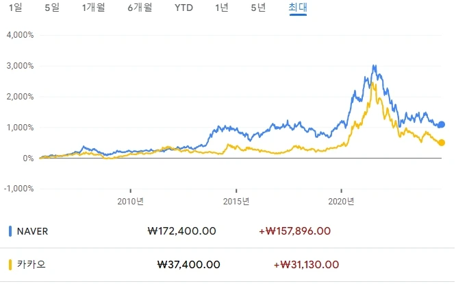 몇 년 전만해도 네이버, 카카오 등이 넥스트 삼성전자 규모로 클 수 있다고 생각하는 투자자들이 많았지만, 네카오는 그 벽을 넘지 못하고 지지부진 합니다. 찰리멍거의 1번 명제가 적용되었다고 볼 수 있겠죠.
