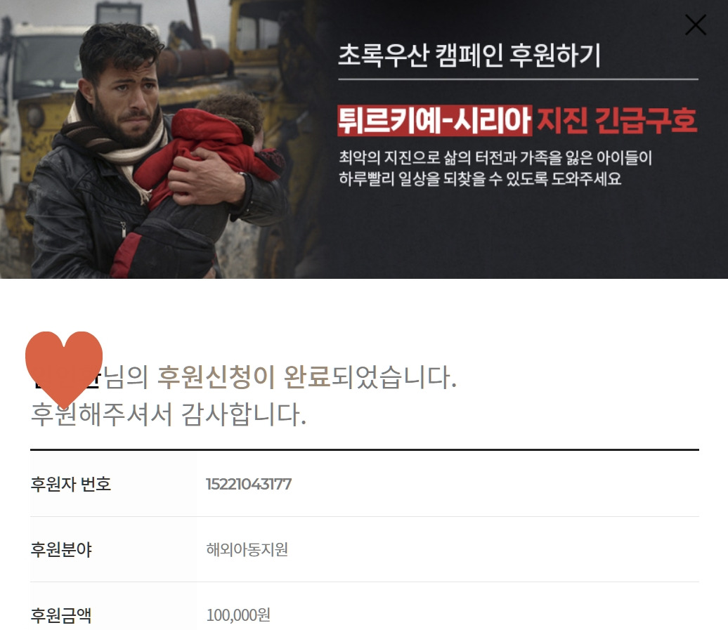 #튀르키예 시리아 지진 피해 후원 #초록우산 어린이재단 #베풂 나눔 성공