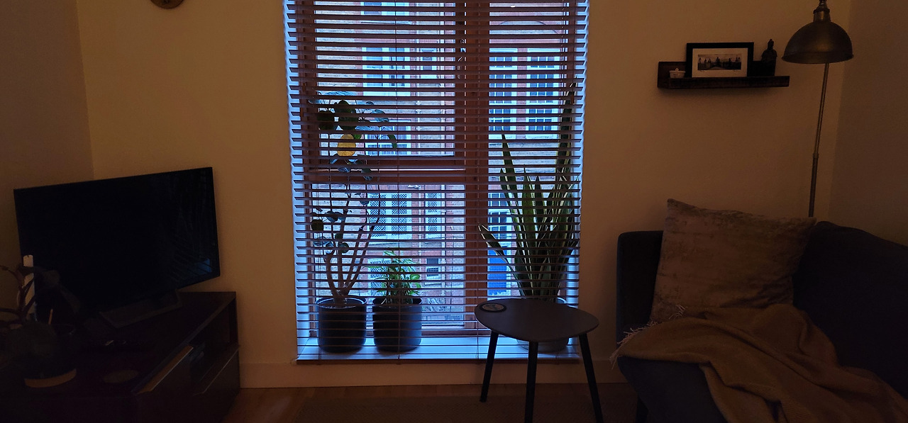 침대 옆의 블라인드로 어렴풋이 밝아지는 런던의 새벽하늘이 보였다.