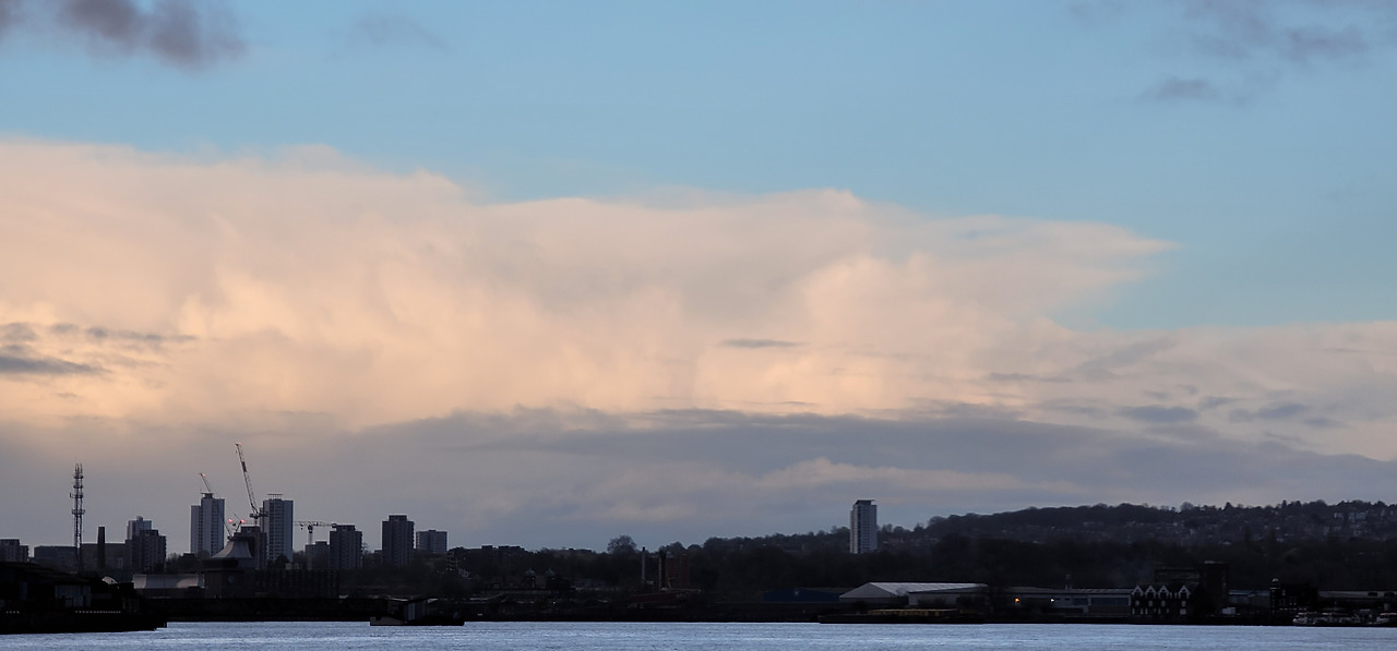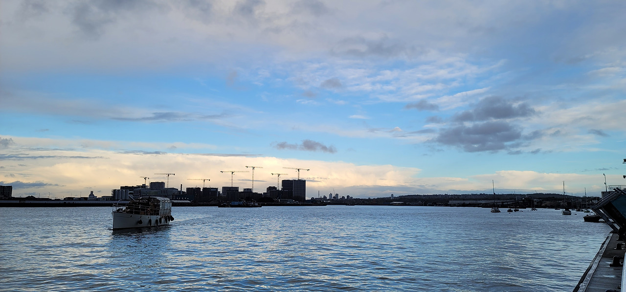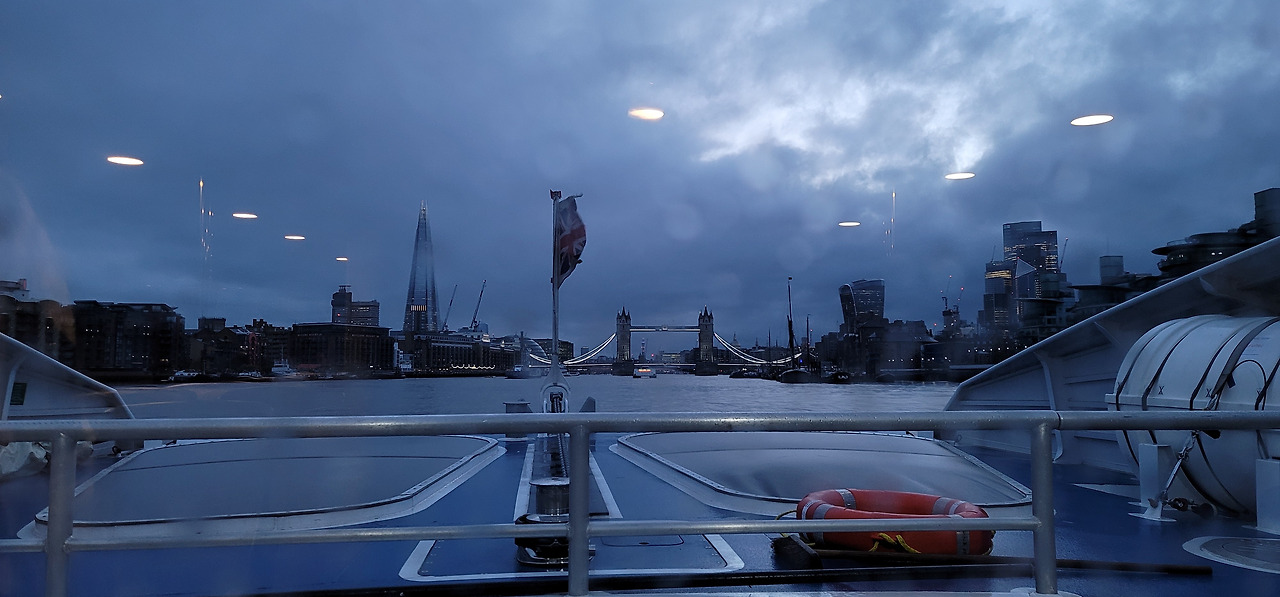 하늘이 흐려지자 물 색도 흐려지고 탬즈강의 물결도 불안하게 파도친다.