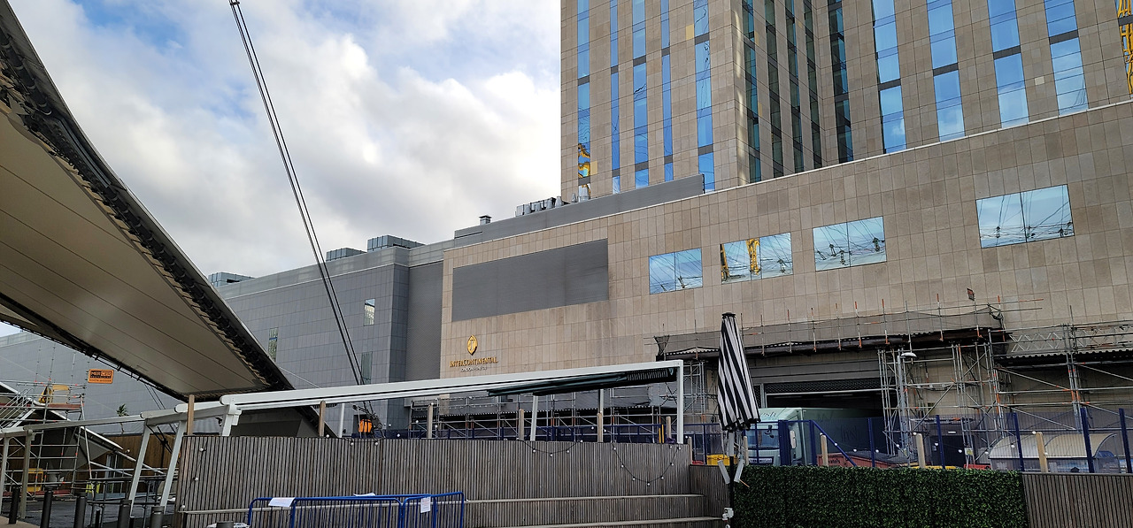 해당 게이트를 나오면 아레나 바로 옆에 위치한 인터컨티넨탈 호텔의 거대한 위용이 나탄나다.