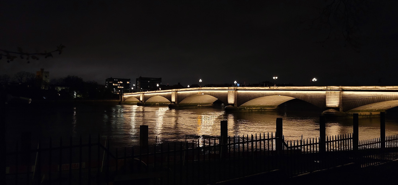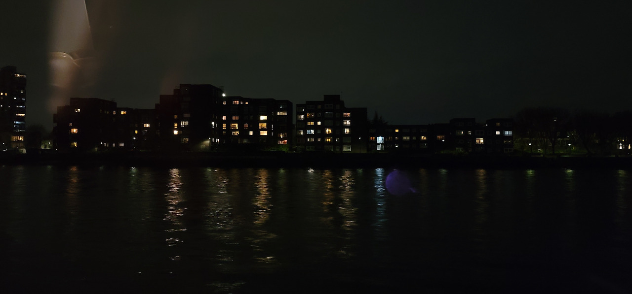 소수의 사람만이 밤의 탬즈강을 가르고 있었다.