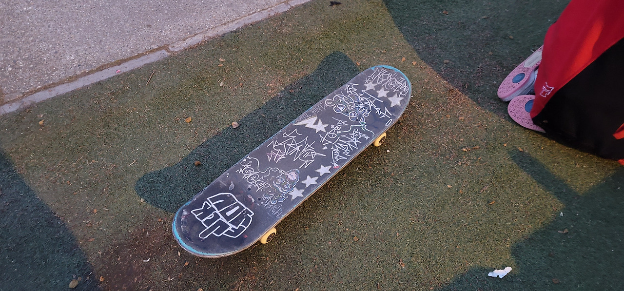 나는 스케이트에 열정이 생겨 보드를 빌려준 친구에게 내일도 오는지 물었다.
