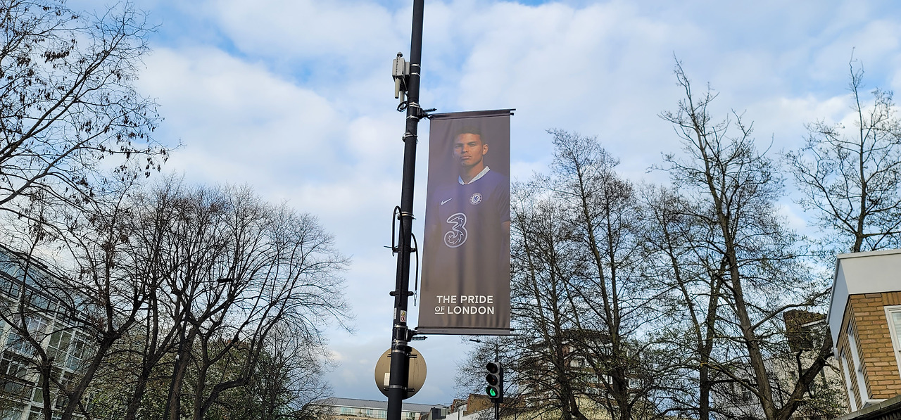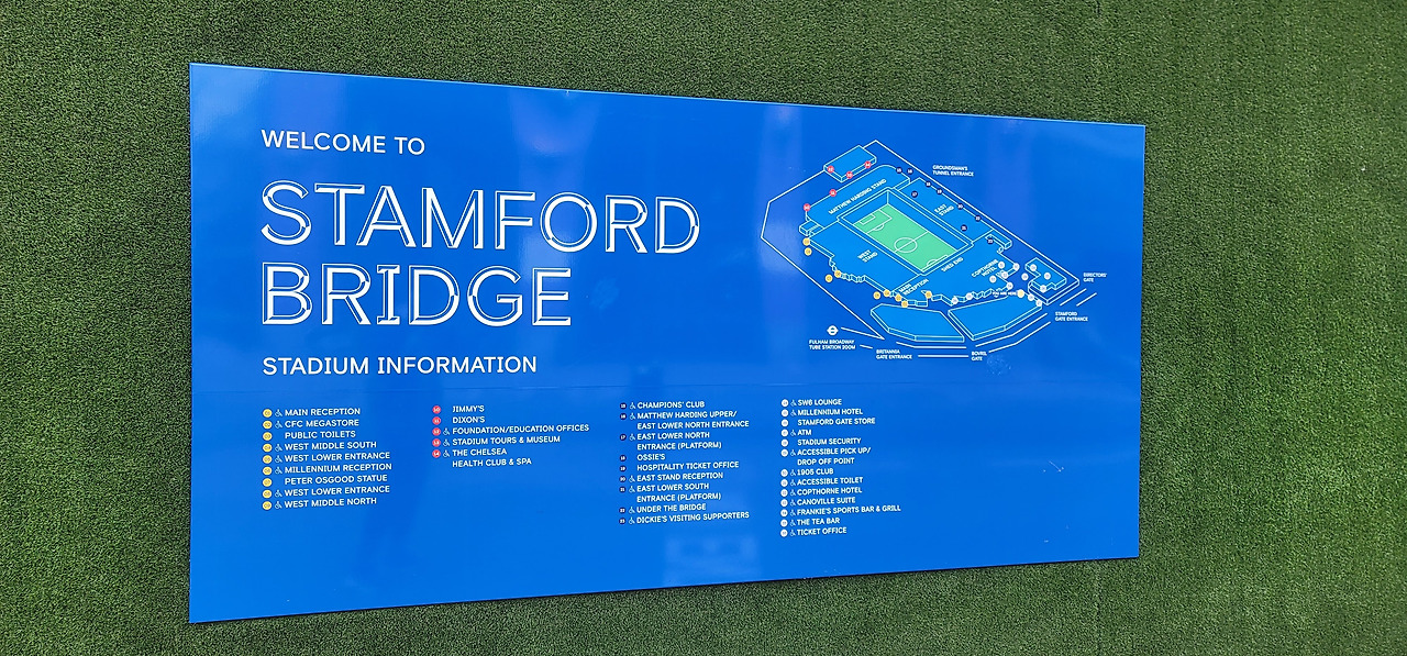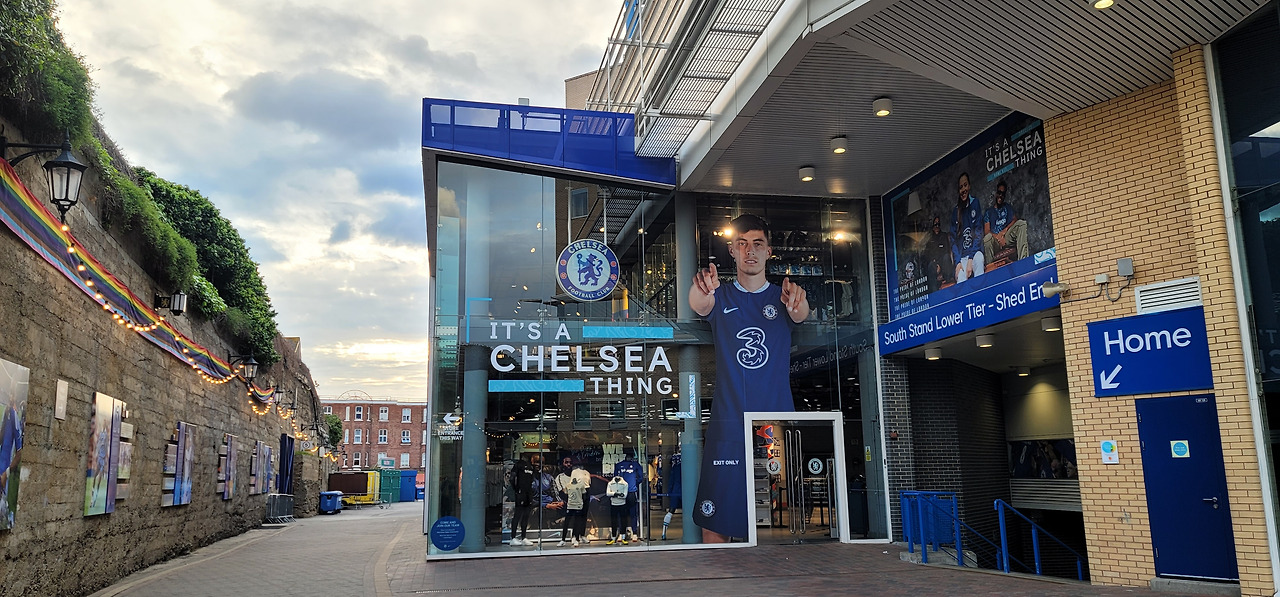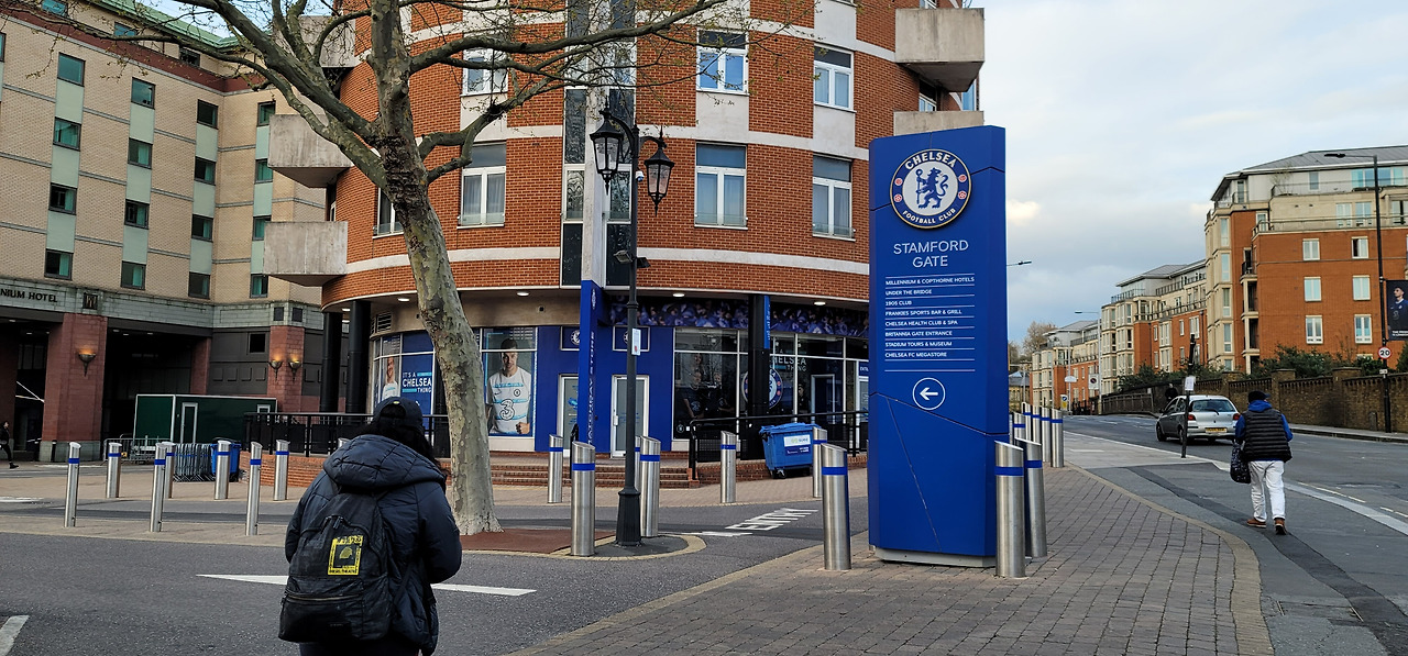 그런데 집으로 가는 길 중간에 축구팀 첼시 FC의 홈구장을 지나간다.
