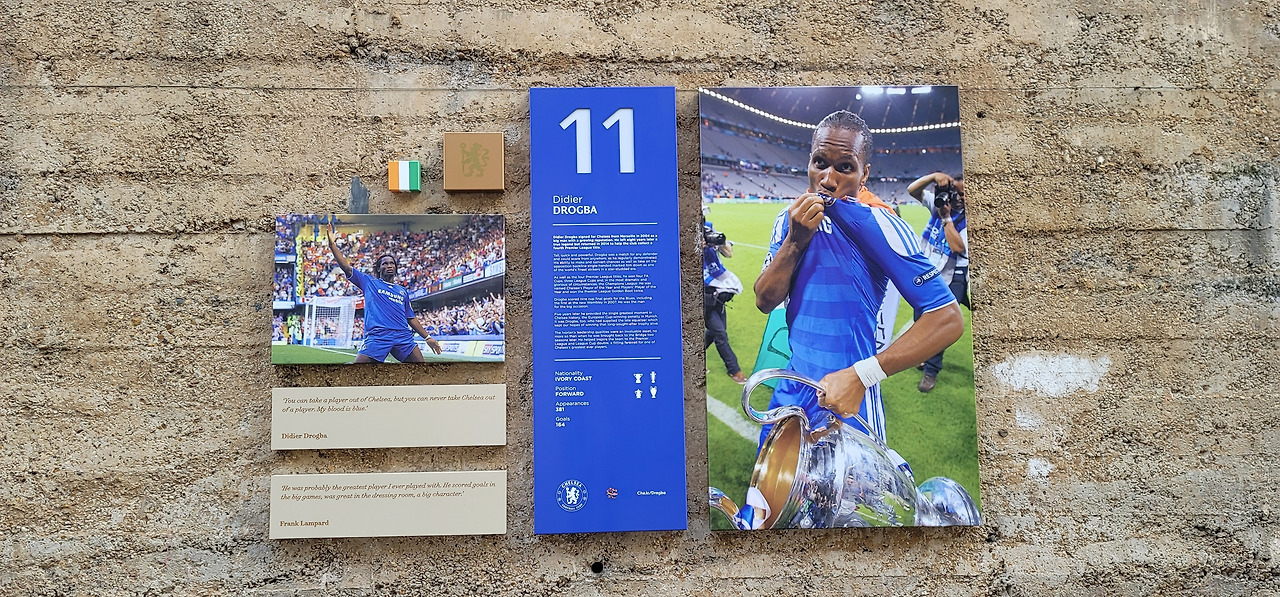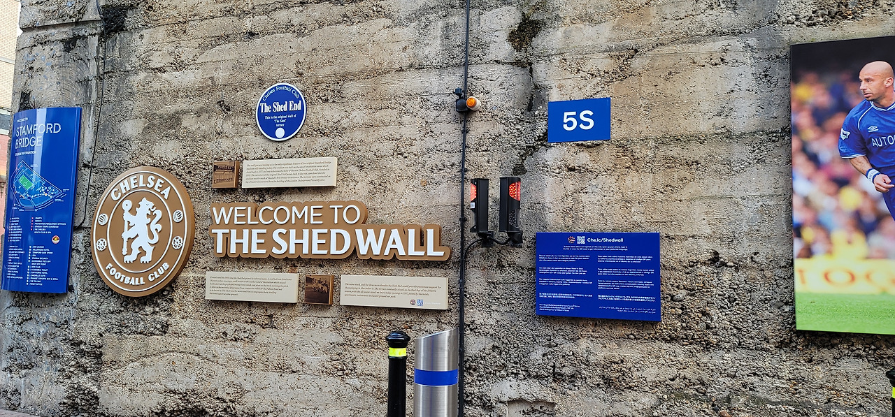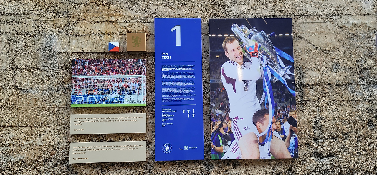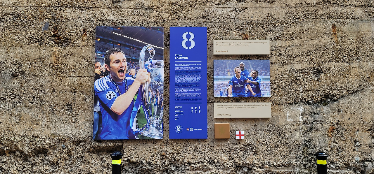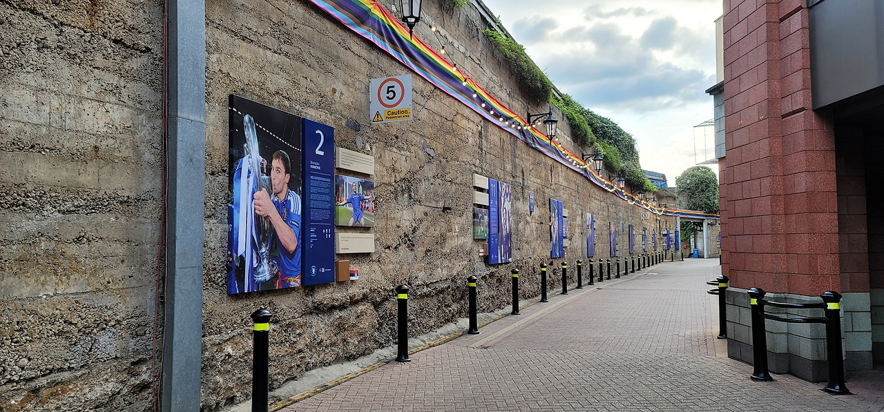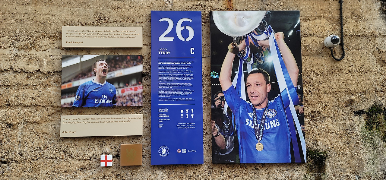 벽을 따라 첼시FC의 역사를 쓴 선수들을 기리고 있다.