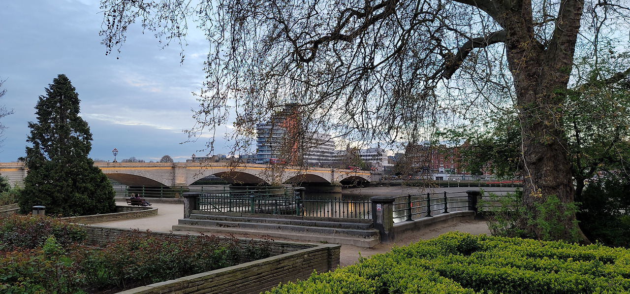 버스를 타고 집 앞까지 가지 않고 그전에 내려서 집 옆의 강변 공원을 구경할 것이다.