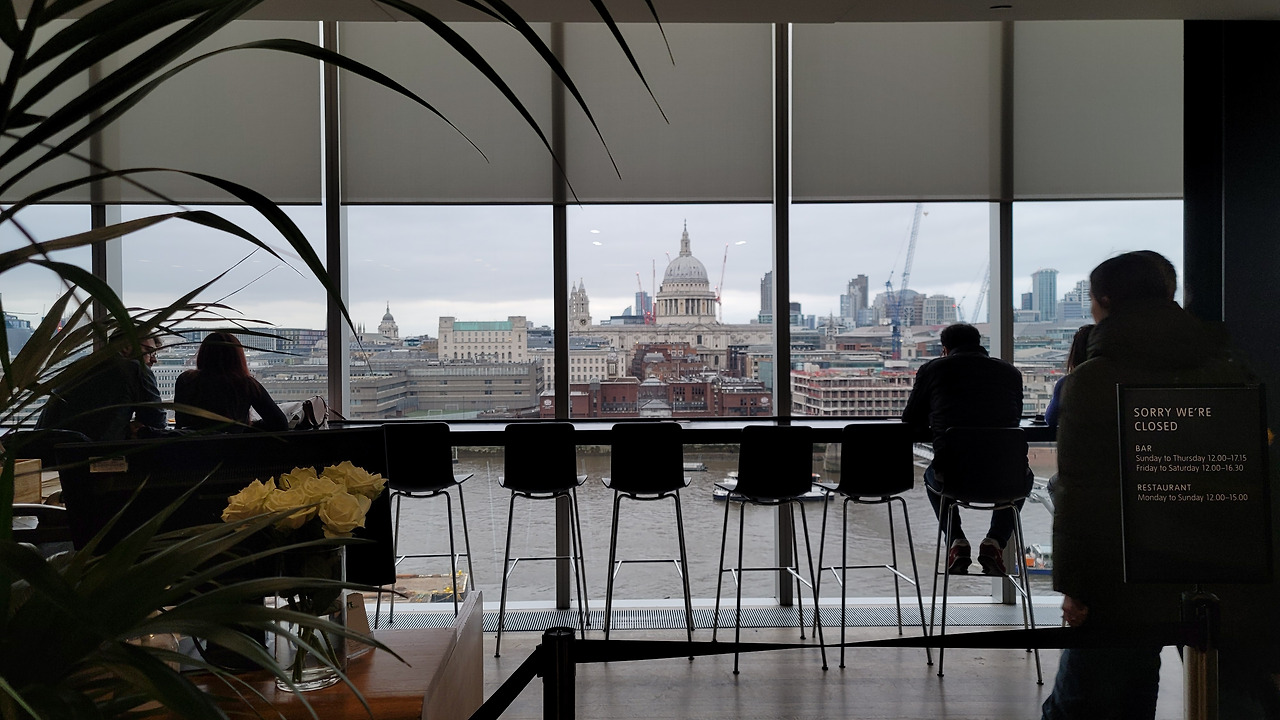 붐비는 사람들을 비집고 테라스로 나가면 탬즈강변의 모습도 즐길 수 있다.