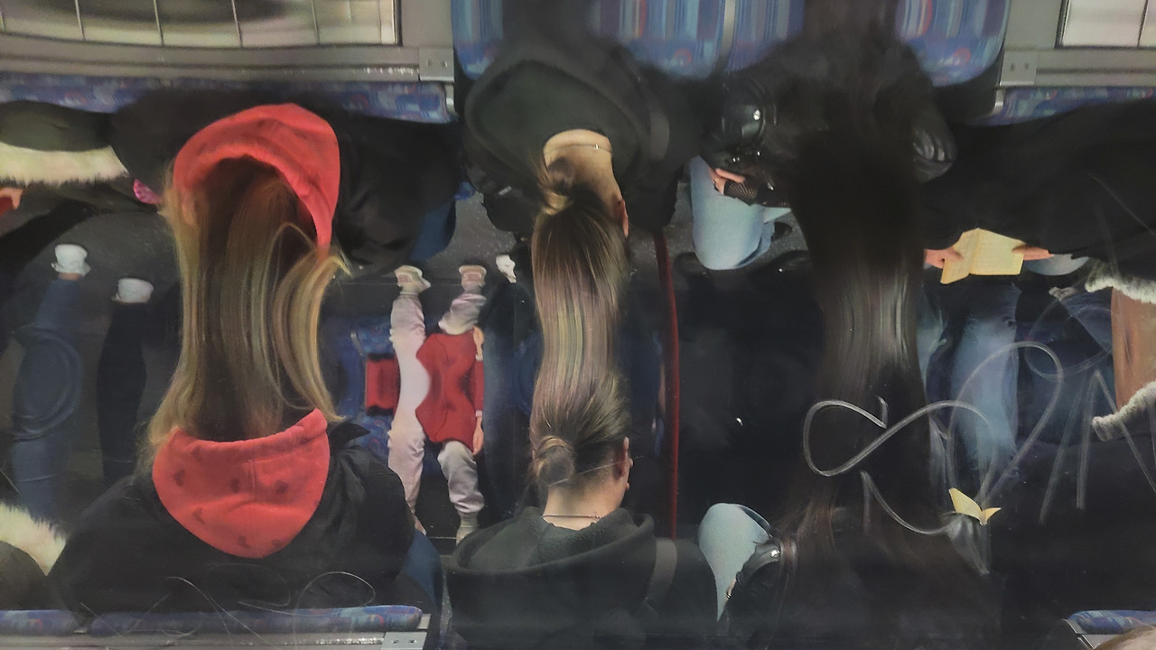 아까 리버풀 스트리트 역 인근 정류장에서 같이 버스를 오매불망 기다리며 발을 동동 구르던 그 빨간 코트 누나!