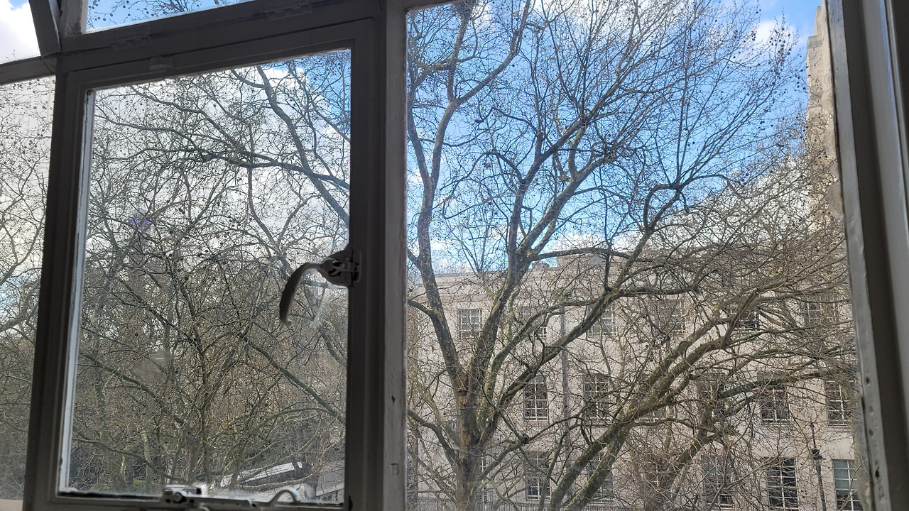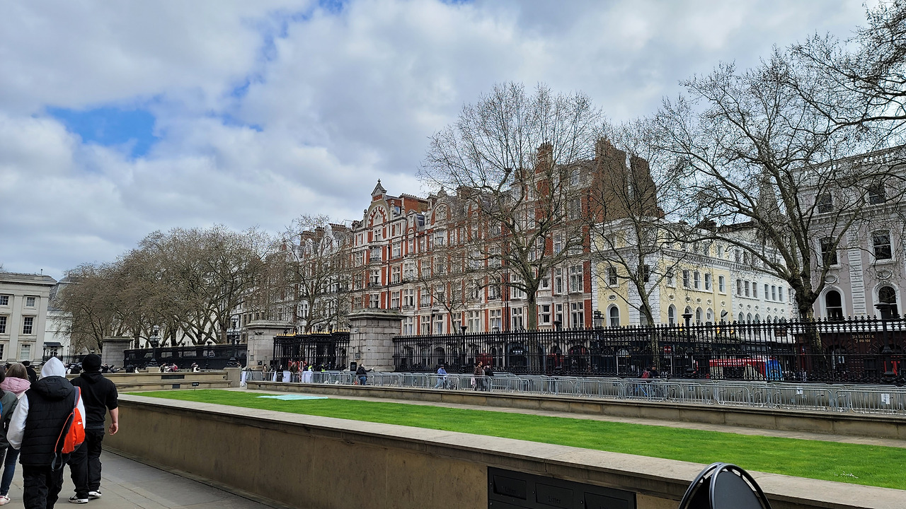 박물관 앞마당에서 보는 주변 풍경. 사진의 것과 비슷한 양식의 고급 건물이 주변에 가득하다.