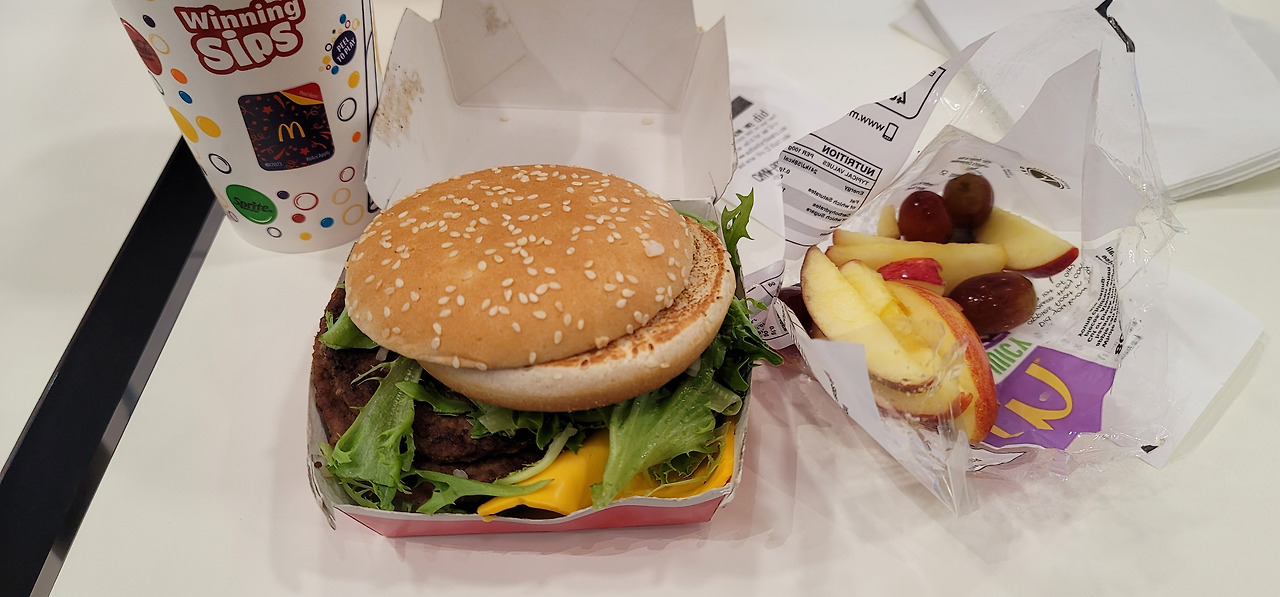 한국 맥도날드와 다른 점은 사이드메뉴를 무상으로 과일 팩으로 교체할 수 있다는 점. 음료의 종류도 훨씬 다양하다.